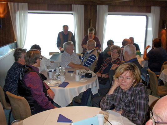 En extra krydda fick kvällen i Gdansk då födelsedagsbarnen Margaretha och René bjöd på förfriskningar i Renés och Railis imponerande svit på 38 kvm högt upp under takåsen. Följande morgon anträddes en angenäm återresa ombord på Finnmaid, tidvis med 19,5 sekundmeter under kölen. Thure ska ha ett stort och varmt TACK för en superlyckad septemberresa! (MBP)