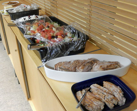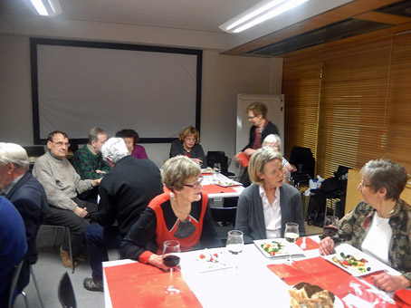 en god sallad, kalkon, gott bröd, frukt, kex och olika ostar. Lotteri med tiotals vinster. Huvudvinsten var