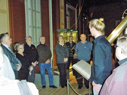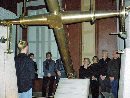 Höstens arkitektoniska rundtur i Carl Ludvig Engels fotspår tillsammans med Bernt Morelius följdes upp den 16 januari med ett besök i Observatoriet, Engels skapelse från 1834. Tjugotre Hbl-seniorer följde intresserat med guiden Mikael Jahns berättelser om rymdforskningen i forna dar, fick smeka en skimrande meteorit med miljarder år på nacken och förundras över hur nationens exakta tidssignal med hjälp av en fallande säck i Observatorietornet förmedlades ut över land och hav. "I djupa källarvalven" fick vi studera en stjärnhimmel effektfullt projicierad i taket.