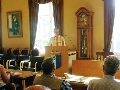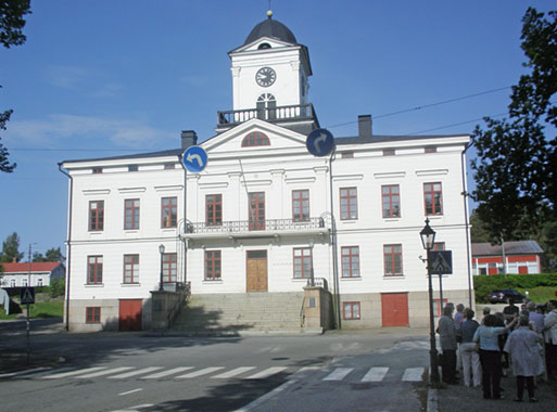 I det mäktiga stadshuset i Kristinestad bjöd förvaltningschef Dan-Anders Sjöqvist på kaffe med bulle och informerade om vad det innebär att Kstad som enda ”finländare”