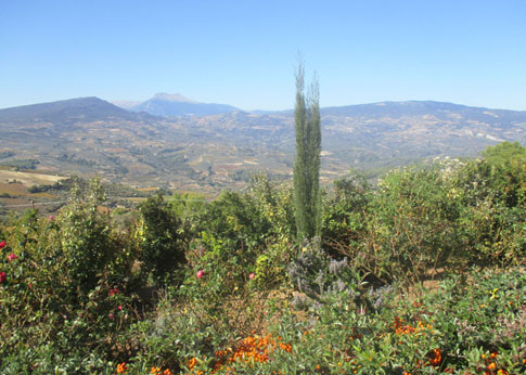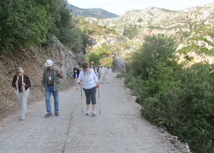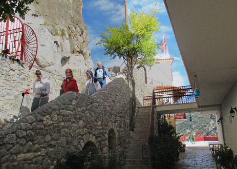 Ovädret hade valt att återkomma, så efter ännu en stormig natt vaknade vi till en ny dag och nya äventyr. Färden gick igen upp över bergen på vindlande vägar, genom olivlundar och apelsinodlingar, stundom genom små byar med trånga gator som ibland var knepiga att ta sig igenom när husknutarna stack ut i krökarna. Vår skickliga chaufför klarade galant dessa problem. Även trafikstockningen i en liten by klarades snabbt av, efter några ilskna signaler kom gubbarna ut från caféet för att flytta på sina bilar så att bussen kunde fortsätta sin färd.