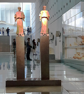I ett soligt och varmt Aten väntade guiden Sinikka Kathopoulis på oss. Vi besökte Akropolis muséet som var ett modernt museum med massor av glas i inredningen det var ljust och luftigt och fyllt med antikens skatter.