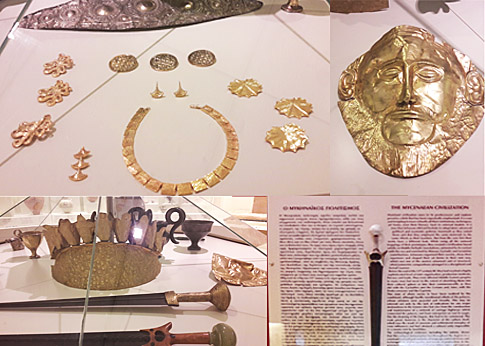 Nästa etapp var Mykene, kung Agamemnons berömda palats som återupptäcktes av Heinrich Schliemann år 1874. Även denna lokala guide Sofia, var engagerad i sitt jobb och berättade inlevelsefullt om Mykenes alla fakta och även om skrönorna som uppstått. På museet såg vi bla. “Agamemnons” dödsmask och även drottning Klytaimnestras krona och smycken. Palatsets murar med den berömda lejonporten var gigantiska och visar på ett enormt både arkitektoniskt och byggnadstekniskt kunnande och detta från tiden 1550 - 1200 f.Kr. På vägen tillbaka till Nafplio stannade vi vid Agamemnons grav, en konstruktion som mest liknar en bikupa, med en dörrbalk som väger 118 ton. Igen ett bevis på fantastisk byggnadskonst.