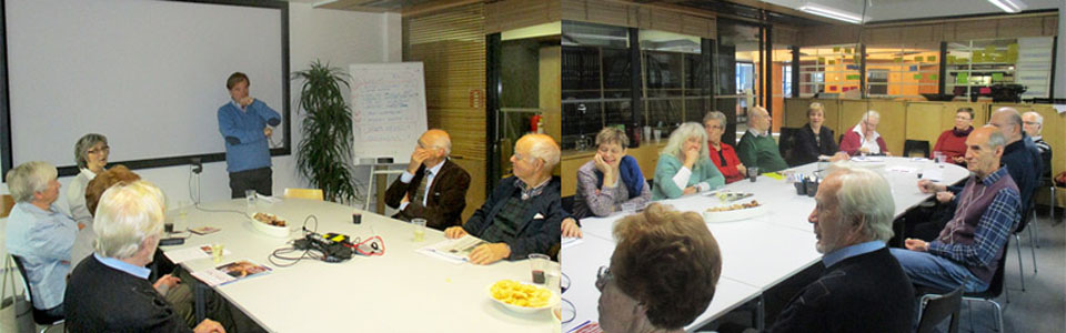 Ett tjugotal medlemmar fick höra både om hur journalistynglet Bruun fick kämpa för att bli anställd på "sin" tidning och om hur enkelt det var för honom att 36 år senare säga upp sig, när det var förbi med glädjen och trivseln i jobbet.