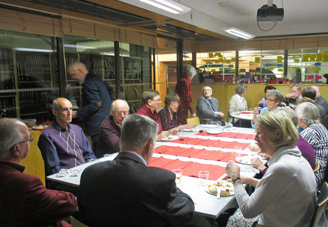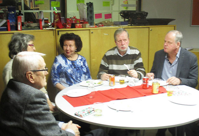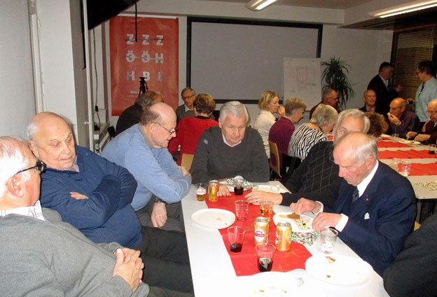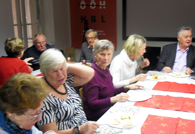 Julfest i gemenskap, för Hbl seniorer, har vid det här laget blivit en tradition kring kalkon, ostar och annat tilltugg med tillhörande drycker. Av sorlet från mängden kan man tänka sig att alla trivdes.