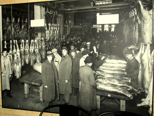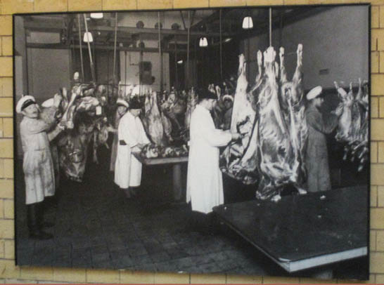 Slakthuset i Fiskehamnen spelar en central roll i Helsingfors stads matkulturstrategi, och Milla Visuri är stadens matkulturstrateg som arbetar med bland annat Strömmingsmarknaden. Onsdagen den 10 februari 2016 tog hon och Helsingfors Partitorgs företagstjänstchef Tiina Suvanen sig tid att lotsa 31 seniorer runt på det stora området där Helsingfors stad inledde slakten 1933 och de sista kropparna styckades 1992.