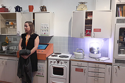 Vi började vår rundvandring i museets utställningskök som ger en inblick i hur tekniken har utvecklats och hjälpt till att klara av de många arbetsmomenten i ett hushåll.