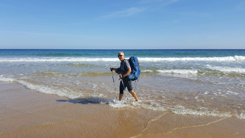 Stebo berättade medryckande om sina upplevelser och strapatser, sina vandringsvänner från olika länder, den goda maten, färsk, nyfångad fisk i de små kuststäderna. Den trötte vandraren övernattade för det mesta på härbärgen för tio euro. En enda gång blev han tvungen att sova under bar himmel. All inkvartering fullbokad.